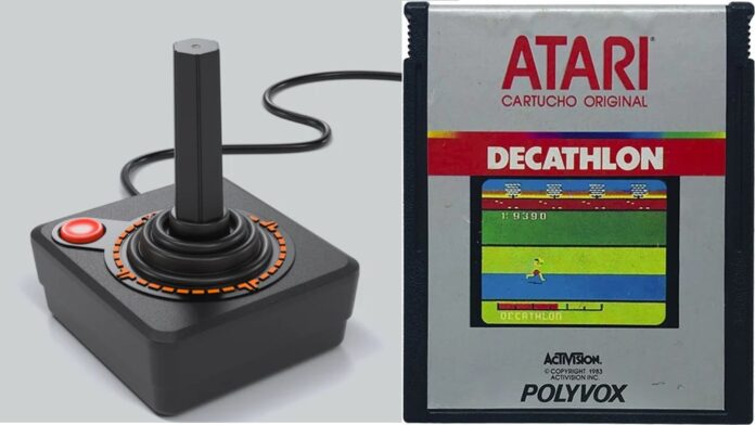 No Atari 2600, o joystick consistia de um botão para as ações e um bastão para a movimentação. Nas modalidades de corrida, “Decathlon” tinha uma barra que precisava ficar cheia para que o atleta representado na tela corresse mais rápido. Para isso, o bastão do joystick precisava ser movimentado de um lado ao outro no máximo de velocidade possível.