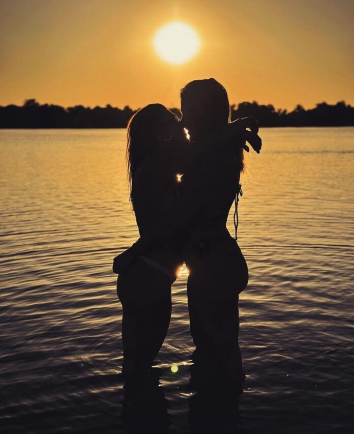 Lauana aproveitou o clima romântico do por do sol para posar ao lado da amada. “O Araguaia é bálsamo de amor e paz”, escreveu na publicação em que as duas aparecem abraçadas.